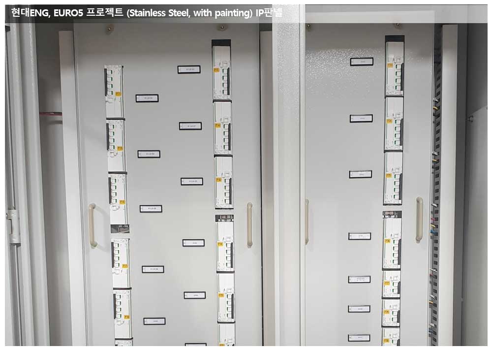 현대ENG, EURO5 프로젝트, IP판넬 페이지 정보 작성자 관리자 작성일19-10-28 13:15 조회19,006회 댓글0건 관련링크 이전글 다음글 목록 본문 공급품목 : IP판넬판넬크기 : 1850*2300*450판넬특징 : Stainless Steel 재질의 판넬에 painting 처리한 판넬입니다. Breaker 독일제품(Schneider)을 사용하였습니다. 댓글목록 등록된 댓글이 없습니다. 이전글 다음글 목록