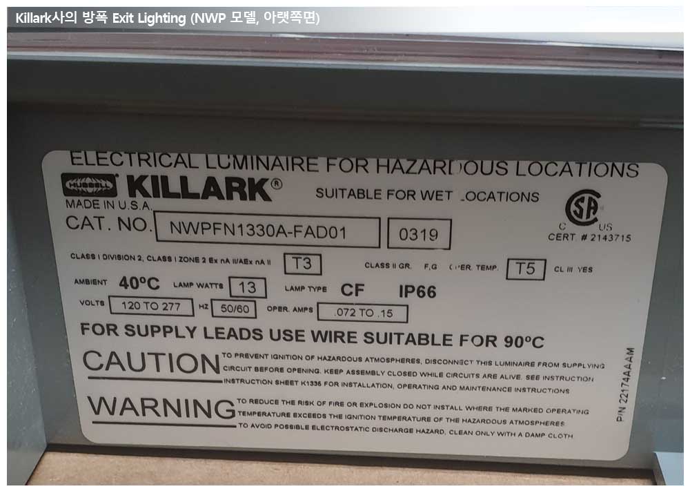 미군기지 프로젝트, Killark사 방폭 Exit Lighting